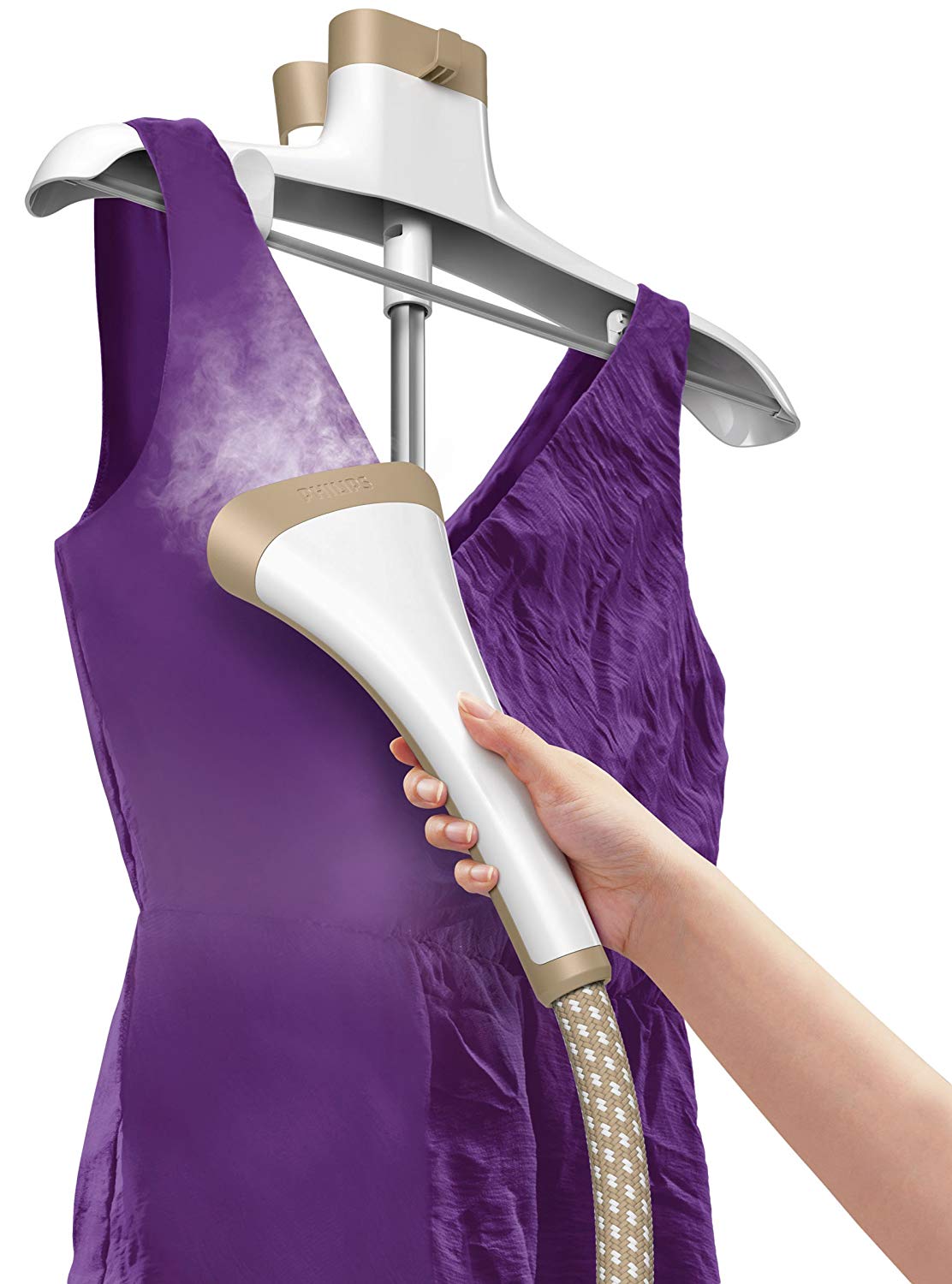 Trụ đứng của bàn ủi hơi đứng Philips GC524 được lắp sẵn, có thể điều chỉnh chiều cao lên xuống linh hoạt giúp bạn không phải cúi người khi là quần áo. Ngoài ra, bạn có thể thu gọn trụ để dễ dàng cất giữ.