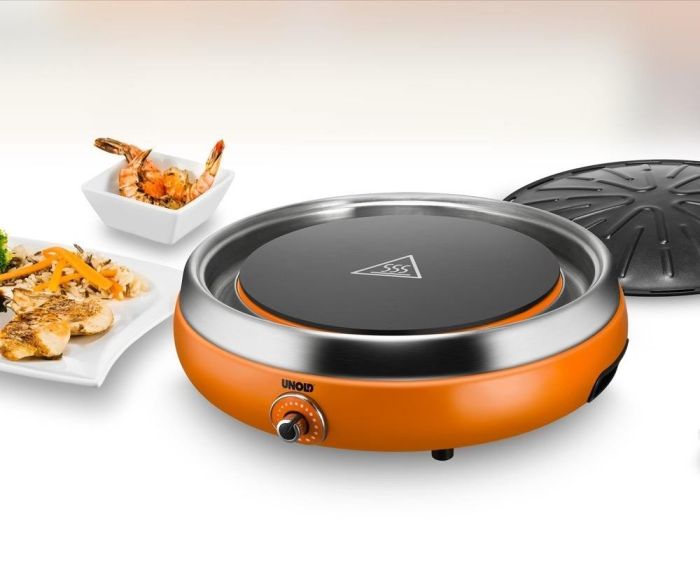BẾP NƯỚNG ĐA NĂNG UNOLD 58543 (Màu cam+ bạc) HÀNG CÓ SẴN – GIÁ: 2.450k Tuyển đại lý bán buôn, CTV trên toàn quốc ----------------------------------------- Bạn thích ăn đồ nướng ️ nhưng việc nướng theo kiểu truyền thống như dùng bếp củi, bếp gas,…lại gây ra nhiều bất tiện Để Mag ship đến tận nơi cho bạn bếp nướng đa năng Unold 58543, tiện dụng, an toàn, lại đảm bảo sức khỏe cho cả gia đình ️ Tấm nướng được làm từ được làm từ hợp kim cao cấp với khả năng chịu nhiệt, không gỉ, chịu lực tốt, đồng thời được tráng thêm một lớp chống dính có độ bền cao giúp bạn an không còn phải lo lắng thực phẩm bị dính vào bếp trong quá trình nướng, vừa giữ được hương vị thơm ngon của món nướng, vừa dễ dàng vệ sinh hơn. ️ Nút điều chỉnh nhiệt độ với 7 mức nhiệt độ (85 ° C đến 330 ° C) dễ dàng sử dụng ️ Không chỉ là bếp nướng thông thường, tấm nướng có thể tháo rời bếp có thể sử dụng như bếp điện ️ An toàn với máy rửa chén Thông số kỹ thuật: Tấm nướng lớn (Ø 30 cm) Công suất: 1.900 W Kích thước (WxHxD): 372x124x358mm ------------------------------------------