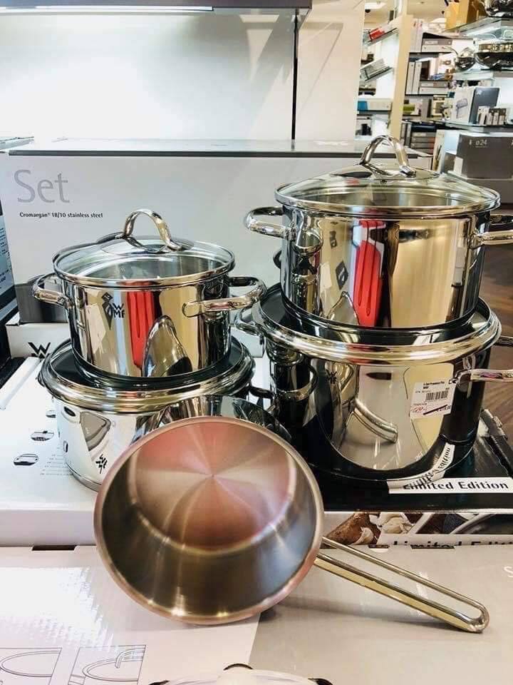 ️ Công nghệ Cromargan độc quyền với 18% chrome, 10% niken và 72% là thép giúp nồi ổn định, bền, chống lại các axit thực phẩm, dễ làm sạch và an toàn với người sử dụng. ️ Bề mặt sáng bóng và siêu bền, chống xước, sử dụng an toàn cho cả máy rửa bát, chất tẩy rửa ️ Công nghệ đáy nồi 3 lớp TransTherm mang đến hiệu quả nấu dẫn nhiệt và truyền nhiệt tối đa giúp tiết kiệm năng lượng và giảm thời gian nấu. Lớp trong cùng tiếp xúc trực tiếp với thức ăn sử dụng chất liệu hợp kim inox tuyệt vời nhất, thép không gỉ 18/10 sở hữu đặc tính độ trơ và chống bào mòn cao, không tương tác với thức ăn và đảm bảo an toàn. Lớp thứ 2 là lớp truyền dẫn, sử dụng chất liệu nhôm nguyên chất đảm bảo tính năng truyền nhiệt và đều hơn bất cứ loại hợp kim nào khác, đồng thời giúp ủ nhiệt cực lâu. Lớp thứ 3, lớp bắt từ được làm bằng thép 18/0(inox 430) trong hợp kim có crom chiếm 18% cho phép đáy nồi nhận nhiệt và truyền nhiệt nhanh. Kết hợp với lớp lõi nhôm đáy nồi giữ nhiệt lâu và đun nấu thức ăn nhanh hơn. ️ Công nghệ Cooling technology giúp tay cầm và quai nồi luôn ở nhiệt độ thân thiện với da người dùng. ️ Chống dính teflon cao cấp không gây ung thư khi đun nấu quá nhiệt, giúp giữ vị thức ăn và không làm tăng acid trong thức ăn. ️ Vành rộng và rìa nội thất : Việc mở rộng quy mô nội thất , tạo điều kiện cho việc đo đếm số lượng, dễ dàng định lượng chất lỏng . Các cạnh bên ngoài cho phép đổ và mục đích để đổ chất lỏng. ️ Hơi mở trong nắp ngăn chặn sự hình thành của chân không , thoát hơi nước mà không kiếm soát được và bắn nước tung tóe trên bếp . ️ SỬ DỤNG CHO MỌI LOẠI BẾP, ĐẶC BIÊT LÀ BẾP TỪ ️ Set gồm: 1 nồi có kích thước Ø16 cm 2 nồi có kích thước Ø20 cm 1 nồi có kích thước Ø24 cm 1 quánh có tay cầm dài Ø16 cm( không nắp) ---------------------------------------------
