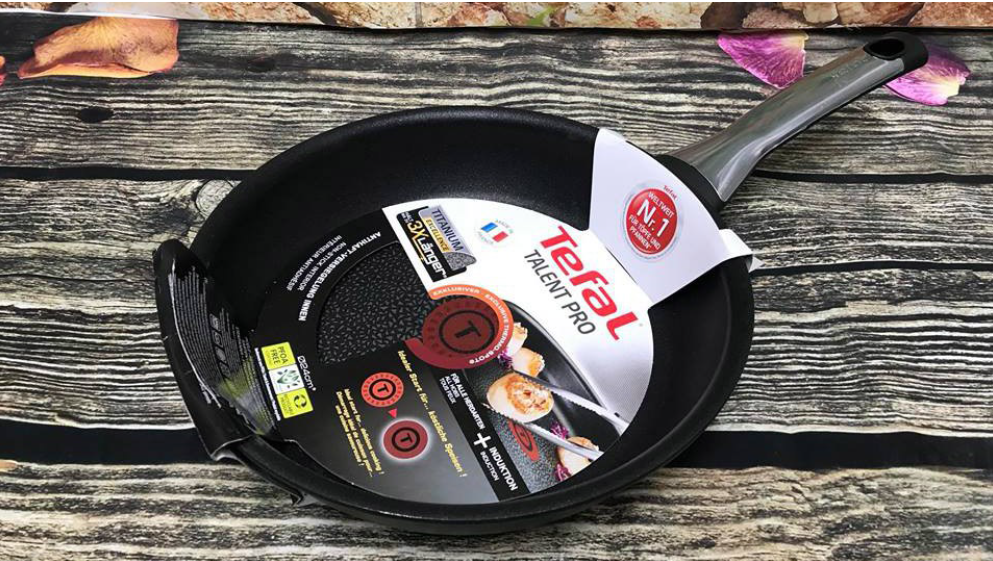 Chảo Tefal Talent Pro E44004 Black 24cm chất liệu nhôm cao cấp với chất chống dính siêu bền Tefal Titanium Excellence cực bền với đặc tính chống dính hoàn hảo, chịu được sự mài mòn cao nhất và có thể sử dụng với các dụng cụ nhà bếp bằng kim loại. Chỉ báo nhiệt độ tích hợp Thermo-Spot đặc trưng của Tefal, thay đổi màu sắc khi chảo đạt đến nhiệt độ chiên tối ưu để cho thực phẩm vào chiên, cho kết quả chiên hoàn hảo. Tay cầm bằng nhựa dẻo chịu nhiệt với mặt trên ốp bằng thép không gỉ cao cấp. Chịu được nhiệt độ tối đa lên đến 175 ° C. Phù hợp với tất cả các loại bếp bao gồm cả bếp từ.