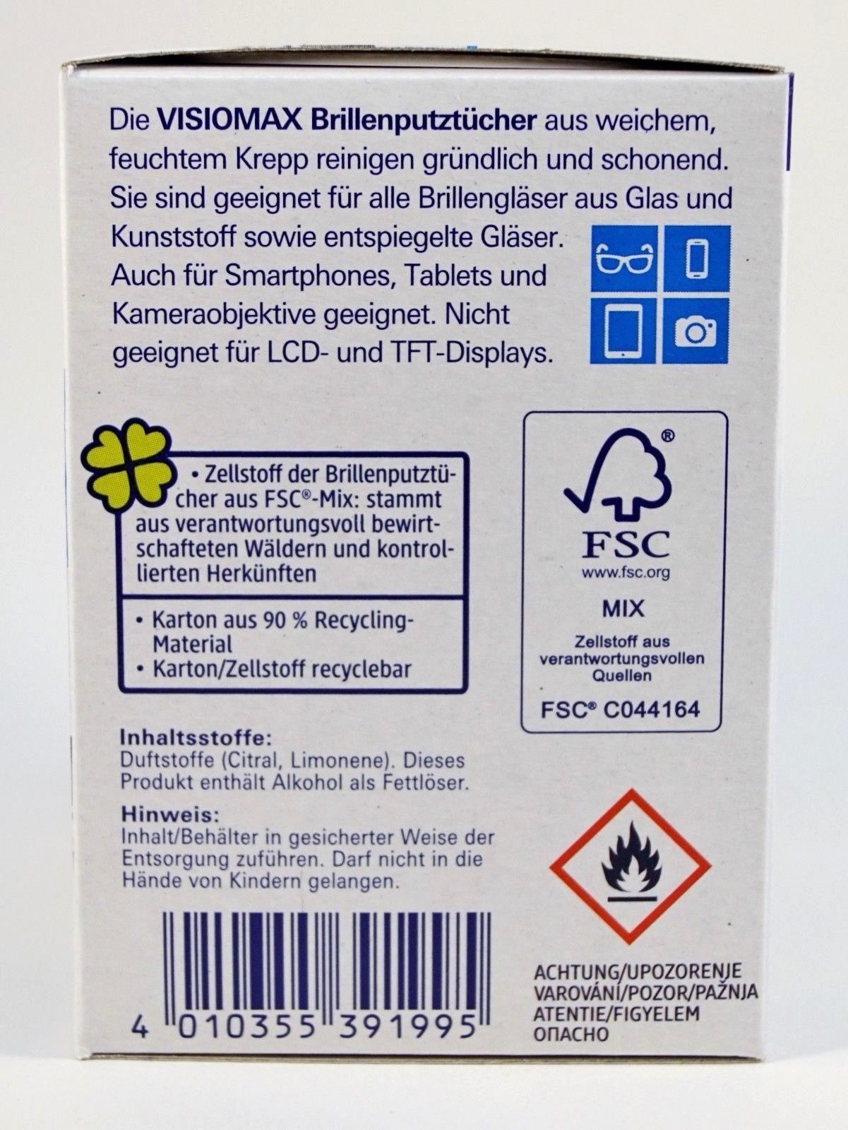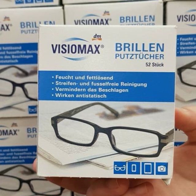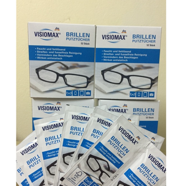 GIẤY LAU KÍNH VISIOMAX - Hàng nội địa Đức Giấy lau kính Visiomax ́ HÀNG CÓ SẴN – Giá: 120k/hộp 52 miếng Tuyển đại lý bán buôn, CTV trên toàn quốc -------------------------------------- Khi bạn chẳng may bị cận thị, viễn thị hay loạn thị, thì việc đeo kính theo chỉ định của bác sỹ là cần thiết. Tuy nhiên do kính phải đeo thường xuyên lại không thể thay thế hàng ngày, nên mắt kính rất bụi bẩn và chóng xước hỏng, đòi hỏi bạn phải vệ sinh mắt kính thường xuyên. ️Đặc biệt, nếu bạn không vệ sinh kính mắt thường xuyên, chúng có thể bị bụi bẩn đeo bám vừa gây mất thẩm mĩ, vừa ảnh hưởng trực tiếp tới của đôi mắt bạn, từ đó ảnh hưởng đến tầm nhìn nữa. Hãy sử dụng các loại giấy lau kính chuyên dụng để giữ cho mắt kính luôn trong vắt, bảo vệ đôi mắt một cách tốt nhất. #GIẤY_LAU_KÍNH_VISIOMAX là lựa chọn tuyệt vời ️ Giấy lau kính Visiomax loại bỏ bụi bẩn và làm sạch mắt kính, bảo vệ mắt kính - chống bám bụi quay trở lại. ️ Là loại crepe mềm, ướt, làm sạch triệt để và nhẹ nhàng. ️ Với thành phần Chống mỡ đặc biệt, đảm bảo làm sạch mắt kính chống tĩnh điện và ngăn ngừa mờ sương. ️ Thích hợp dùng để lau tất cả các vật dụng liên quan đến kính. Như Các thiết bị như máy ảnh, điện thoại di động, TV, máy tính và màn hình (không phù hợp cho LCD và màn hình TFT)…. ️ Tất cả các ống kính làm bằng thủy tinh và nhựa ️ Lớp phủ chống phản chiếu ....