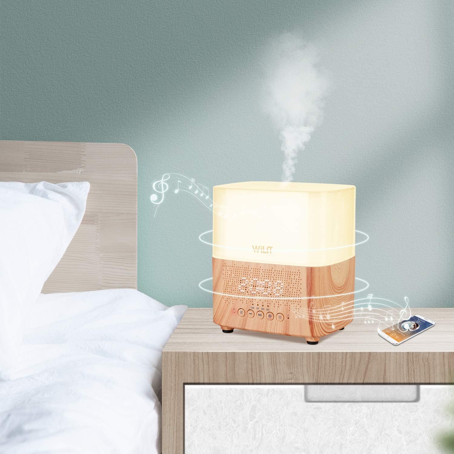 Sản phẩm tích hợp chức năng 4 trong 1: vừa tạo độ ẩm và khuếch tán tinh dầu, đèn LED mood light, loa bluetooth và đồng hồ báo thức.