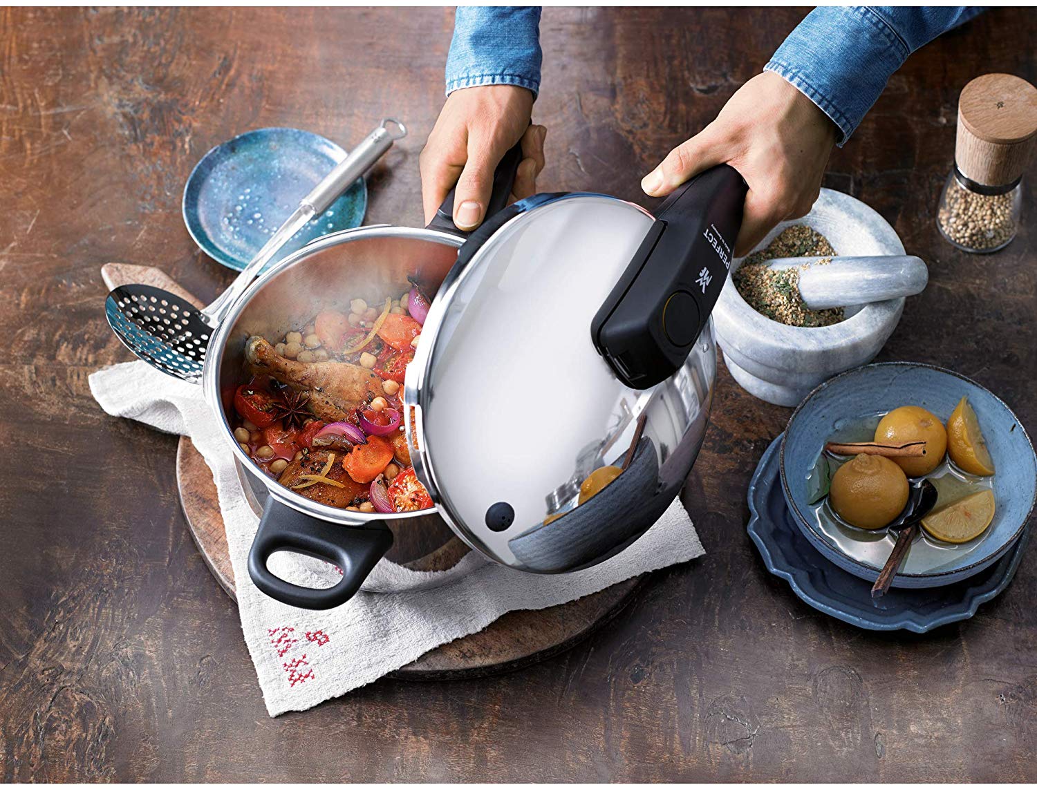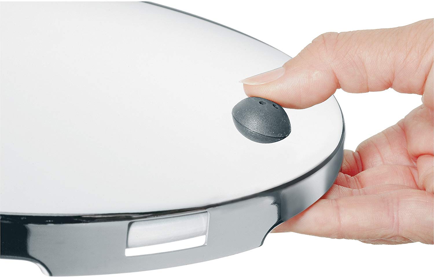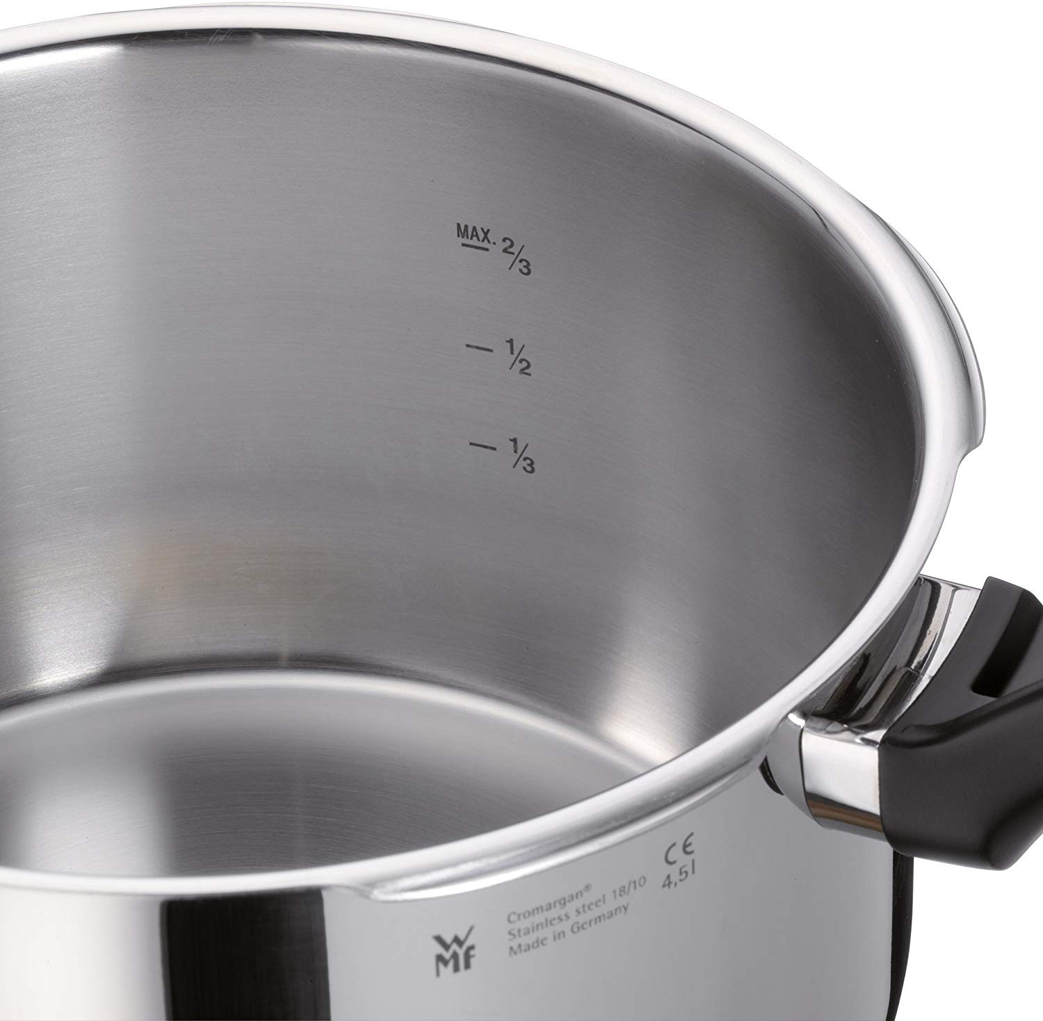 NỒI ÁP SUẤT WMF 4.5L Nồi áp suất WMF 4.5l ????????̂̀???? ????́???? ????????????̂́???? ???????????? ????.???????? HÀNG CÓ SẴN - GIÁ: 3.900k Tuyển đại lý bán buôn, CTV trên toàn quốc ---------------------------------- ️ Chất liệu thép không gỉ Cromargan 18/10. Cromargan giúp sản phẩm bền, sáng, chống lại các va đập. Ngoài ra, Cromargan còn có tác dụng chống bị bào mòn do các loại thức ăn có tính axit, an toàn trong máy rửa chén. ️ Thiết kế hiện đại và dễ dàng sử dụng: Tất cả các chức năng hoạt động của nồi đều nằm trên tay cầm. Bộ phận điều khiển giúp cài chặt nồi, chọn chế độ nấu, cũng như mở nắp nồi khi nấu xong. Tay cầm và nắp đậy dễ dàng tháo rời để vệ sinh riêng ️ Một núm điều chỉnh cho tất cả các chức năng vận hành: đóng và mở, đặt mức nấu và tự động bốc hơi. ️ Với 2 chế độ hầm: giai đoạn đầu 110°C và giai đoạn hầm sâu 119°C ️ Nồi áp suất với 2 vòng đệm là phụ kiện sử dụng để giúp bạn kê các nồi ️ Hệ thống van siêu bền dùng hàng chục năm ko hỏng ️ Hệ thống bảo vệ hơi dư thừa, an toàn khi mở nắp ️ Hầm cực nhanh nhưng vẫn giữ nguyên vitamin cho món ăn ️ Thông số kỹ thuật: Đường kính : 22cm Chiều cao : 13.5cm Dung tích nồi nấu: 4.5l Trọng lượng~ 3.4 Kg --------------------------------------