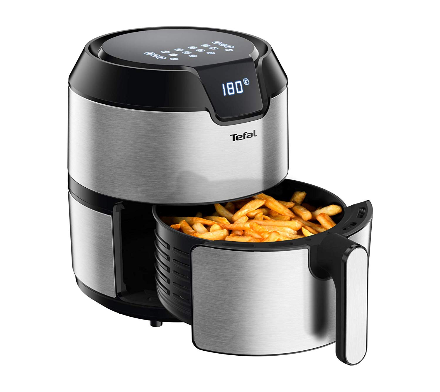 Nồi chiên không dầu Tefal EY401D ️ Nồi chiên không dầu Tefal EY401D được thiết kế với kiểu dáng hiện đại, gam màu sang trọng, kích thước nhỏ gọn, phù hợp nhiều không gian bếp khác nhau. Công suất hoạt động 1500W mạnh mẽ, giúp làm chín nhanh mà không tốn điện. ️ Nồi có kích cỡ XL, sức chứa 1.2 kg thực phẩm, đáp ứng nhu cầu sử dụng từ 4 - 6 thành viên gia đình. ️ Công nghệ luân chuyển khí nóng 3D giúp đồ ăn trong ngọt ngoài giòn, tốt cho sức khỏe vì chiên nướng không cần hoặc cần rất ít dầu. ️ Có 8 chương trình nấu được lập trình sẵn cho bạn lựa chọn dễ dàng và phù hợp với từng món ăn như khoai tây chiên, sườn, tôm, nướng bánh, pizza, cá, bít tết, thịt gà. Việc của bạn là chọn công thức nấu và bấm chọn là xong, đợi nồi nấu xong sẽ có chuông báo, vô cùng tiện lợi, không cần phải chờ đợi. ️ Bộ kiểm soát nhiệt độ, dễ dàng cài đặt nhiệt độ theo nhu cầu (từ 80°C đến 200°C). Bộ hẹn giờ lên đến 60p ️ Lòng nồi thiết kế rộng, phủ chống dính, dễ dàng vệ sinh sau khi sử dụng. Ngoài ra, bạn có thể tháo rời các khay của nồi chiên Tefal và rửa trong máy rửa chén, tiết kiệm thời gian hơn rất nhiều. ️ Thông số kỹ thuật: Bảng điều khiển điện tử; Công suất: 1500W; Kích thước: 32.6 x 32.6 x 39.1 cm