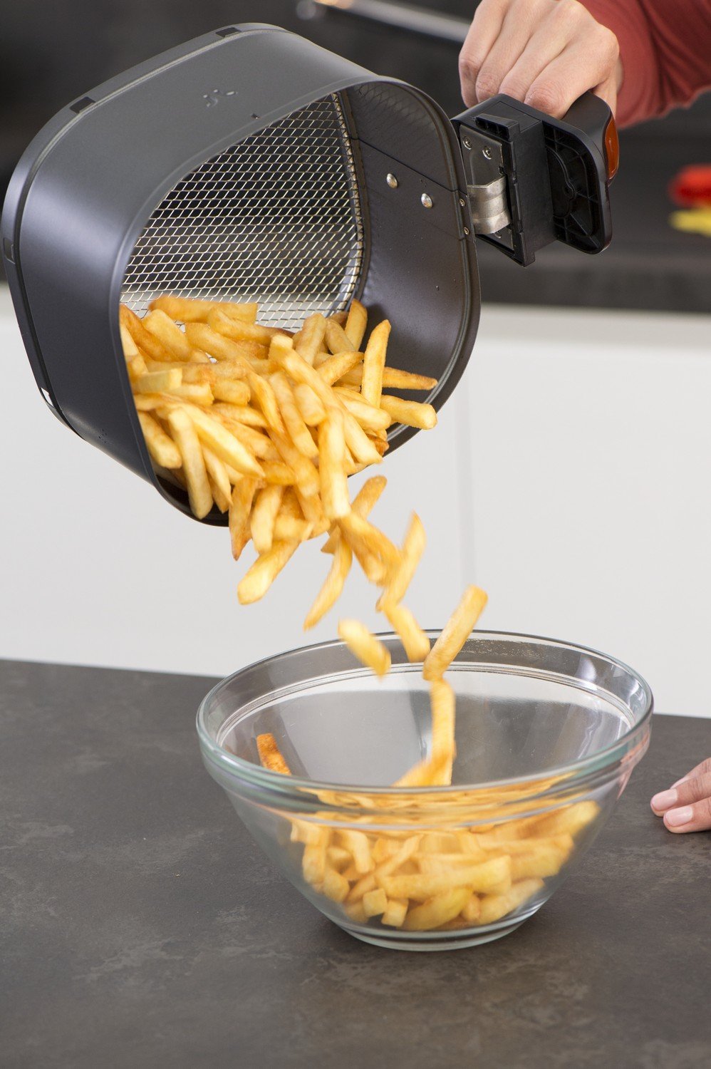 NỒI CHIÊN KHÔNG DẦU TEFAL FX100015 HÀNG CÓ SẴN – Giá: 4.150k Tuyển đại lý bán buôn, CTV trên toàn quốc -------------------------------------- Kiểu dáng hiện đại Nồi chiên không dầu Tefal FX100015 được thiết kế nhỏ gọn, tiết kiệm không gian bếp; với dáng hình vuông thanh lịch, sang trọng và hiện đại. Mẫu mã chuẩn đẳng cấp Châu Âu, nâng tầm không gian bếp nhà bạn. Đặc biệt, nồi được phối từ hai gam màu đen và trắng, tạo sự nổi bật và ấn tượng, giúp gian bếp thêm tiện nghi và mang tính thẩm mỹ cao. Thiết kế tiện ích Nồi chiên không dầu Tefal FX100015 với chương trình hẹn giờ 30p, vô cùng tiện lợi. Chỉ cần nhấn nút cài đặt giờ phù hợp, trong khoảng thời gian chờ đợi đó bạn có thể làm bất cứ việc gì mà không cần quan tâm đến nồi. Đến thời gian cài đặt, thức ăn chín và nồi sẽ tự động tắt. Vỏ nồi được làm bằng chất liệu nhựa cao cấp, độ bền siêu việt, sáng bóng theo thời gian, chống trầy xước đỉnh cao. Lòng nồi được phủ lớp chống dính, chống bám thức ăn ưu việt, giúp người dùng dễ dàng lấy thức ăn ra khỏi nồi, giữ nguyên hình dáng ban đầu của món ăn và tăng tính thẩm mỹ để kích thích vị giác. Các bộ phận của nồi được thiết kế tác biệt nhau nên công tác tháo lắp nồi dễ dàng, tạo sự thoải mái trong công tác lau chùi. Có thể dùng rửa trong máy rửa bát. Công nghệ chống nóng bề mặt nồi, bảo vệ đôi tay của người nấu khỏi vùng nóng, chống bỏng siêu việt. Công nghệ hiện đại Nồi chiên không dầu Tefal FX100015 ứng dụng công nghệ xung khí nóng – Fry delight FX100015 Tefal. Với công nghệ ưu việt này, nồi sẽ chiên rán/nướng thức ăn ngon miệng và giòn tan mà không cần hoặc cần rất ít dầu. Với các món ăn giảm được 80% lượng dầu mỡ, đảm bảo sức khỏe cho cả gia đình bạn. Đa chức năng Nồi chiên không dầu Tefal FX100015 với những chương trình cài sẵn, 4 chế độ nấu, bao gồm: chiên, nướng, rán, xào. Giúp các chị em nội trợ dễ dàng lên thực đơn với nhiều món ăn hấp dẫn và thơm ngon. Vì thế, nhiều người đã ví Tefal FX100015 như chiếc nồi “vạn năng”. Công suất cực đỉnh Nồi chiên không dầu Tefal FX100015 với công suất lên đến 1400 W, vừa rút ngắn thời gian nấu nướng, vừa tiết kiệm điện năng. Với công suất này, các bạn có thể chiên tới 800g thức ăn chỉ trong thời gian ngắn. Phục vụ thực đơn cho gia đình gồm 4 người ăn chỉ trong chốc lát. Xứng đáng là vật dụng tiện lợi cho mọi gian bếp. Không chỉ sở hữu công suất cực đỉnh mà nồi chiên không dầu còn sở hữu mức nhiệt cực lớn. Có thể điều chỉnh nhiệt từ 150-200 độ C, phù hợp với hầu hết các món ăn. Kích thước: 44,5 x 36,2 x 34cm --------------------------------------