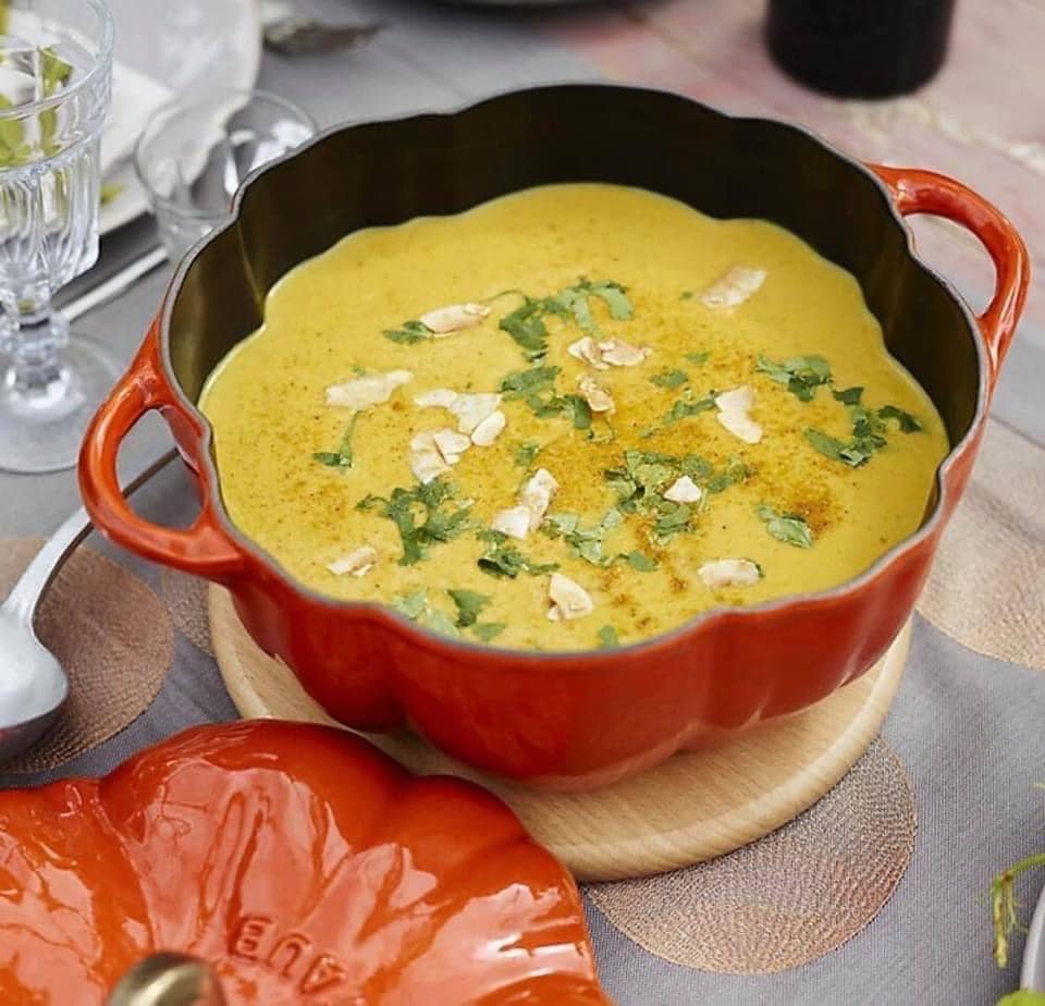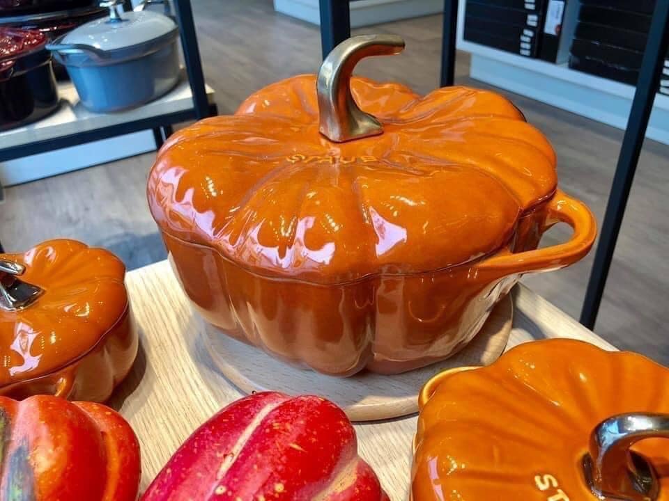 Nồi gang Staub bí ngô 24cm, cao 19 cm, dung tích 3,45 lít, Made in France dùng cho các món nấu chậm đảm bảo tuyệt ngon, để trên bàn tiệc như một món đồ trang trí không thể thiếu.