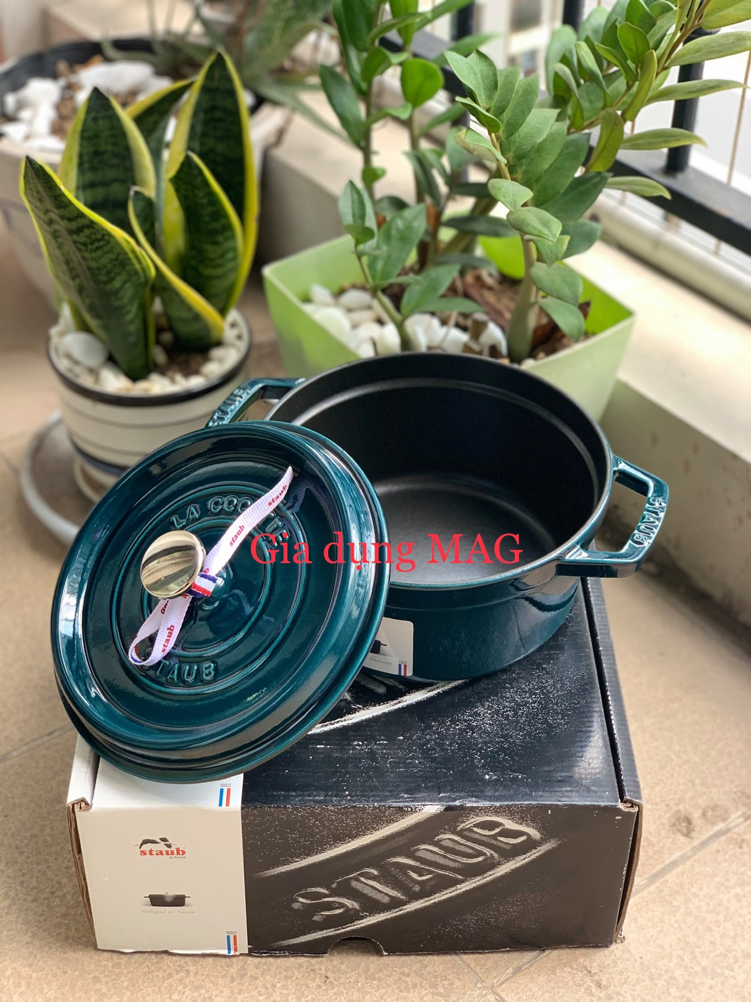 - Nồi gang Staub Cocotte La Mer – 20cm được thiết kế sang trọng với công nghệ tráng men nhiều lớp, màu men đặc trưng rất trong trẻo và có chiều sâu mang đến hơi hướng của công nghệ cổ điển.