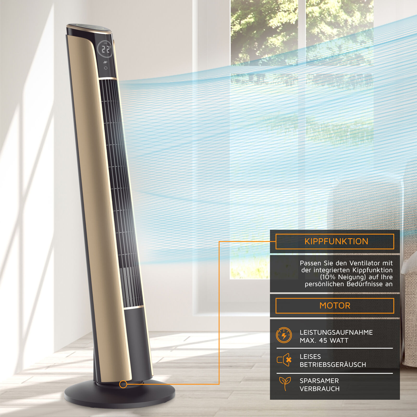 Tuyển đại lý bán buôn, CTV trên toàn quốc -------------------------------------- ️ Thiết kế hiện đại, nổi bật mà những dòng quạt truyền thống ko có được Quạt tháp có kiểu dáng nhỏ gọn, hiện đại, với các đường nét hết sức tinh tế, phù hợp với mọi không gian. Góp phần tạo nên “sự tiện nghi, sang trọng” cho không gian sống. Thiết kế dạng hình trụ dài, cao 108 cm, quạt phân phối không khí theo chiều dọc, có thể nghiêng 10°. tự động quay 65° theo chiều ngang. ️ 3 tốc độ thấp/trung bình/cao giúp bạn điều chỉnh tùy vào nhiệt độ từng thời điểm hoặc nhiệt độ phòng mong muốn. ️ 4 chế độ hoạt động (Bình thường, Tự nhiên, Ngủ, Trẻ em): Trong “Chế độ ngủ”, quạt giảm tốc độ dần dần rồi tắt. Tương tự như chế độ trẻ em: Đây là nơi thiết bị bắt đầu ở cấp 3, giảm xuống một cấp cứ sau 15 phút, tiếp tục lên cấp 1 và tắt sau 3 giờ. Chế độ tự nhiên làm mới với làn gió định kỳ. ️ Màn hình LED 4,9 inch (12,4 cm) với màn hình điều khiển kỹ thuật số (có thể tắt) ️ Hẹn giờ tắt và dao động 1-12 giờ. Nhiệt độ phòng cũng được hiển thị ở đây cho bạn. ️ Vận hành êm ái, Chỉ với 40 dBA ở cấp 1, 46 dBA ở cấp 3, Kiểm tra và chứng nhận với nhãn hiệu an toàn (GS) được công nhận trên toàn cầu. ️ Đi kèm điều khiển từ xa với 6 nút, phạm vi 6 m, có thể được cất gọn trong quạt. ️ Thông số kỹ thuật: Công suất 45 watt; Kích thước: Đường kính chân: 31 cm; thiết bị: 13,3 cm; Chiều cao khoảng 108 cm. Chiều dài cáp: 1,35 cm Trọng lượng: ~4,4 kg Nguồn điện : 220 – 240 volt ~AC 50/60Hz -----------------------------------------