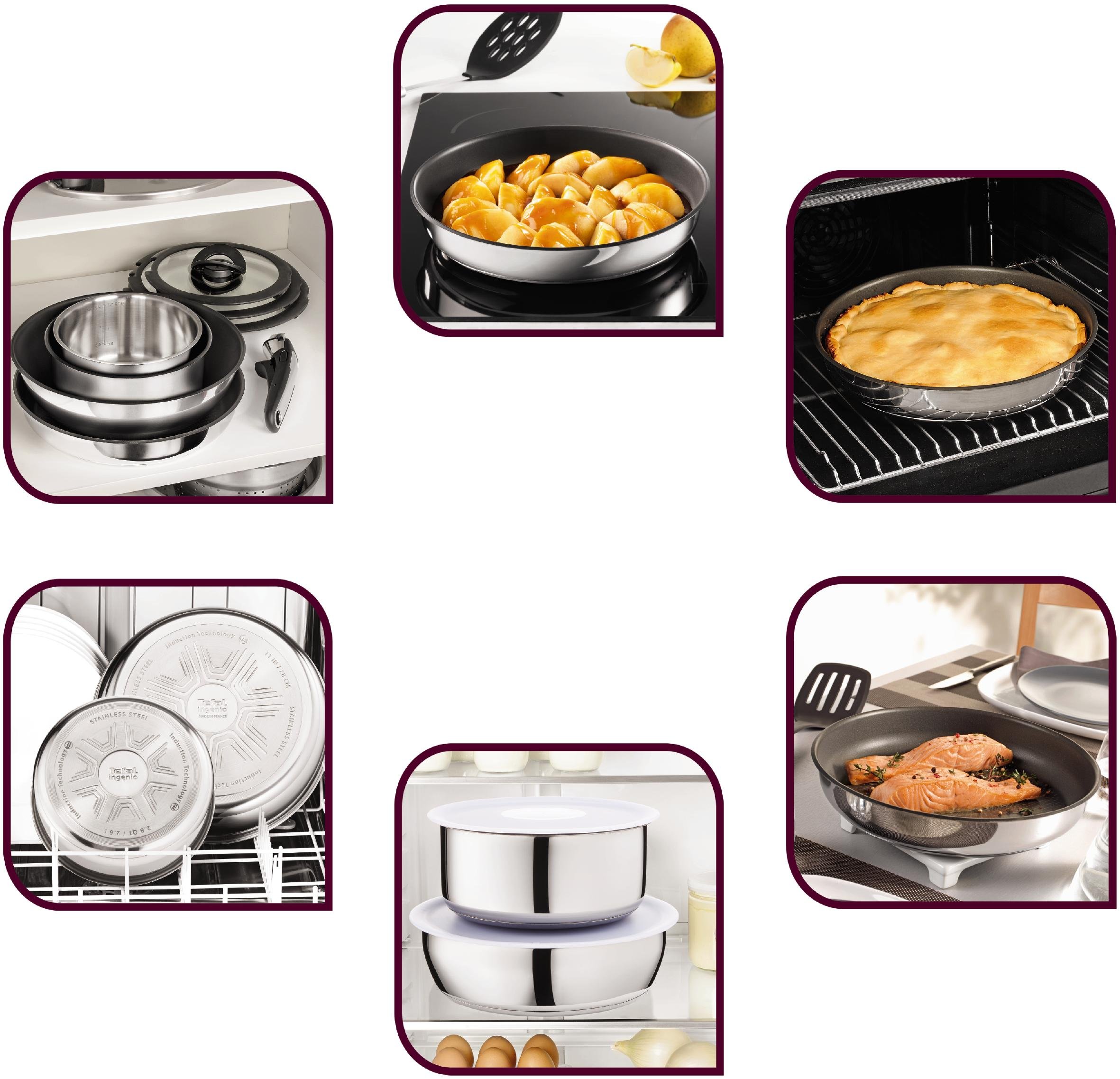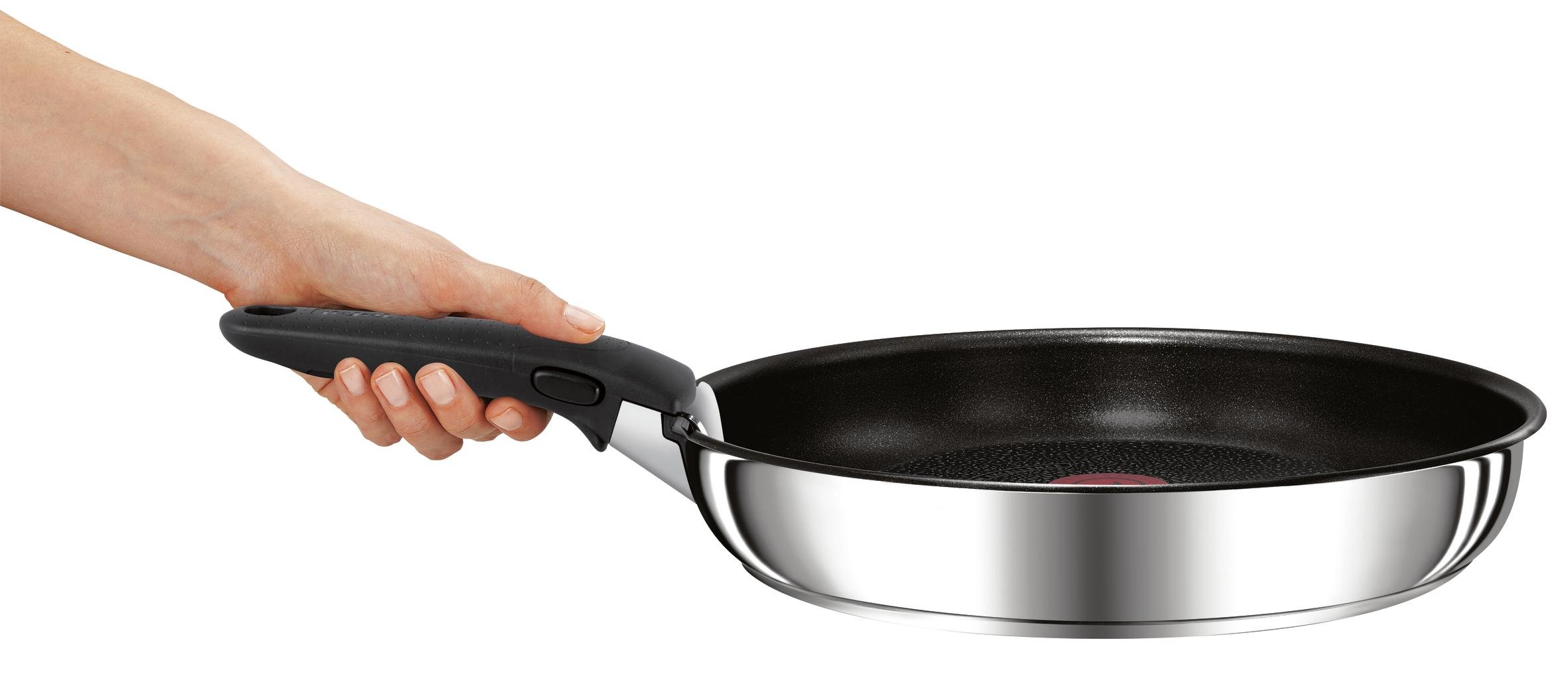 SET 2 CHẢO TEFAL INGENIO Set 2 chảo Tefal Ingenio Preference ̉ HÀNG CÓ SẴN – GIÁ: 2.500k Tuyển đại lý bán buôn, CTV trên toàn quốc --------------------------------------- ️ Chất liệu thép ko gỉ 18/10 an toàn tuyệt đối khi tiếp xúc đồ ăn ở nhiệt độ cao và không bị oxi hóa khi tiếp xúc hóa chất. ️ Đáy 3 lớp tiêu chuẩn bắt từ cực nhanh, giữ nhiệt tốt. Lớp phủ chống dính Tefal Titanium Excellence siêu bền được gia cố thêm lớp sơn lót bằng titan cứng và lớp phủ ngoài bằng Titanium cho tuổi thọ cao và đặc tính chống dính hoàn hảo. Có thể sử dụng các dụng cụ bếp bằng kim loại để kết hợp nấu rán. ️ Được trang bị tay cầm Ingenio 5 có thể tháo rời được làm bằng nhựa nhiệt dẻo. ️ Vành rót được tạo viền vuốt tạo điều kiện cho việc rót không bị đổ/ rớt. ️ Công nghệ THERMO-SPOT: Công nghệ đầu tiên trên thế giới được tích hợp vào chỉ báo nhiệt độ chảo, nó chỉ ra khi chảo đã đạt đến nhiệt độ chiên tối ưu để cho thức thức ăn vào. ️ Thích hợp cho tất cả các loại bếp, kể cả bếp từ. ️ Có thể dùng trong lò nướng nhiệt độ lên đến 250° C (không dùng tay cầm trong lò nướng) ️ Set gồm: 2 chảo: Ø 22 + Ø 26 cm Chiều cao: 5 cm Cán rời, dài 20 cm và chung cán -----------------------------------------------