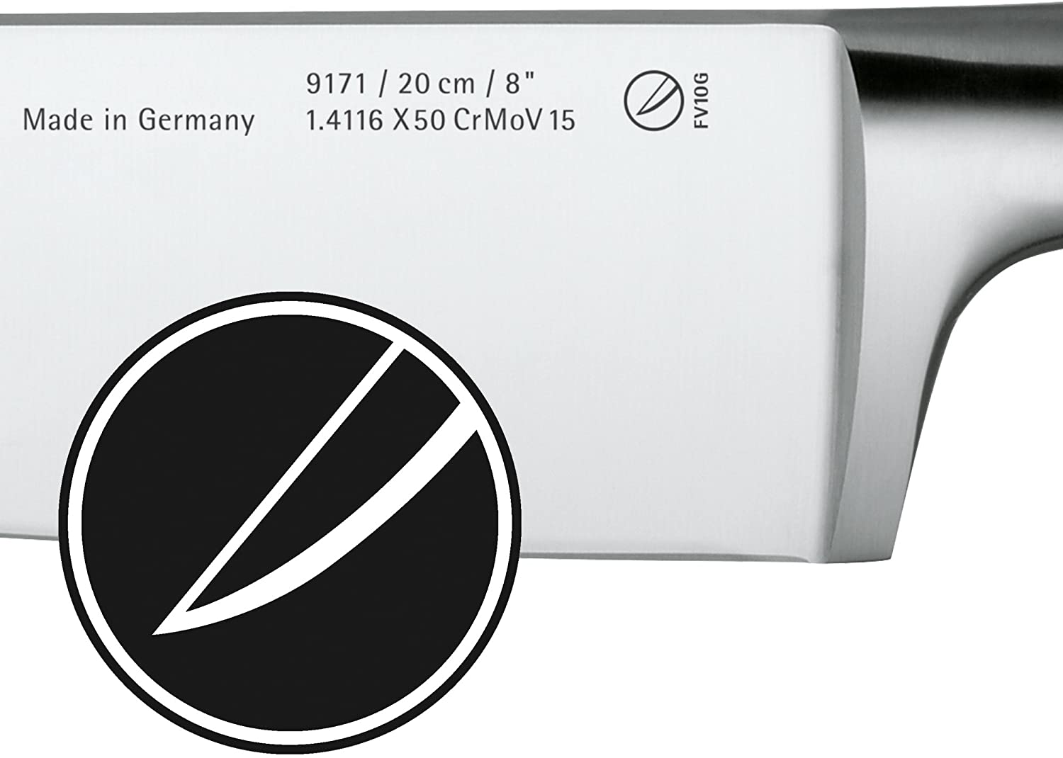 HÀNG CÓ SẴN - Giá: Tuyển đại lý bán buôn, CTV trên toàn quốc -------------------------------------- Được làm bằng thép phiến đặc biệt cứng, được gọi là thép 15% crôm-molybdenum-vanadium. Vật liệu đảm bảo độ sắc nét và độ đàn hồi đặc biệt, khả năng chống ăn mòn và độ bền cắt dài. Tất cả các lưỡi đều chống gỉ và chống axit. Nhờ công nghệ Performance Cut, WMF kết hợp những lợi ích của việc rèn truyền thống với công nghệ tiên tiến nhất hiện đại, giúp lưỡi dao có độ sắc nét cao, tính bền vững và khả năng chống mài mòn tốt. Tay cầm có thiết kế vừa tay, với 3 đinh tán chắc chắn ở cán dao, có trọng lượng cân bằng lý tưởng đem lại cảm giác thoải mái khi sử dụng. Set gồm: 1 dao x 20cm, 1 dao 14cm, 1 dao x 8 cm -----------------------------------------